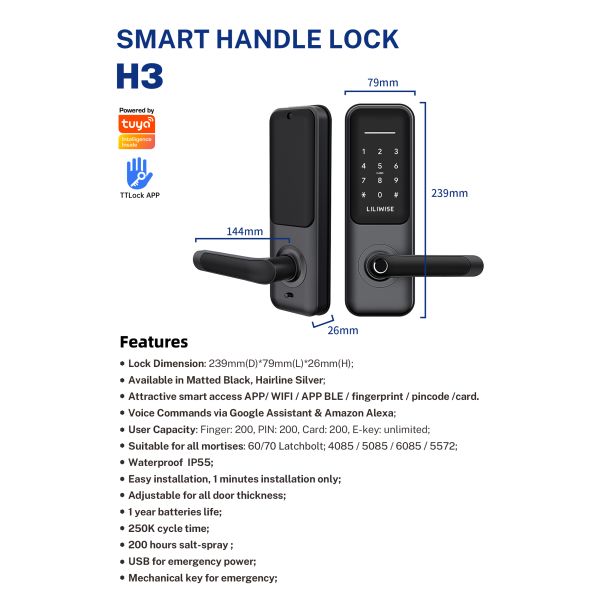 Liliwise High Security Fingerprint Ttlock Smart Lock Tuya WIFI BLE Digital Smart Door Lock For Home Airbnb Apartment Project